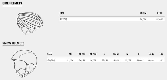 2. Теперь сопоставьте полученный результат с размерами шлемов, которые указаны в сводных таблицах.