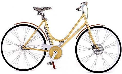 Золотий велосипед – і цим все сказано. Ручна робота, більш ніж 600 кристалів Swarovski, позолочена рама. Сусальним золотом оздоблений шкіряний значок-бейджик з номером велосипеда (всього їх випущено 10 штук). Про ходових характеристиках виробник замовчує, зате ціна говорить сама за себе – 100 з лишнім тисяч доларів. В принципі, до цього велику можна ставитися як до інвестиції.
