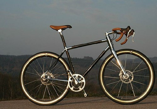 Французький дизайнер Фануэль Кренкер зібрав велосипед з деталей і вузлів, виготовлених найповажнішими фірмами. Від себе він додав обтягнуті шкірою елементи дизайну – сідло і незвичайне рішення керма.